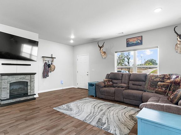 Discover this stunning newer home featuring durable concrete composite siding, nestled in the charming community of Cotter. With 3 bed, 2 full baths & a 2-car garage, this property offers the perfect blend of comfort & style. As you enter, you'll be greeted by an open floor plan that maximizes natural light. The kitchen boasts beautiful granite countertops, under-counter lighting, a pantry plus eat at kitchen island ideal for entertaining or casual family meals. Enjoy the warmth of the electric fireplace, luxury vinyl flooring throughout & 9' ceilings. The home features an on demand hot water heater; all appliances will remain & it's connected to city utilities for your convenience. Outside, you'll find a privacy-fenced backyard, perfect for outdoor gatherings, pets or simply relaxing in your own oasis. Furniture is negotiable with a fair offer, and a turnkey VRBO is also a possibility. Don't miss your opportunity to own a modern home in Cotter that's well maintained & move in ready.