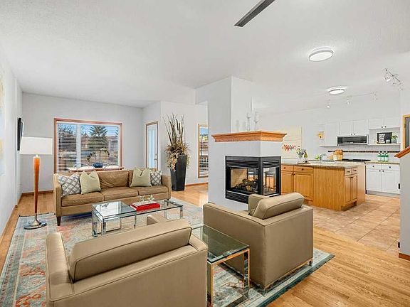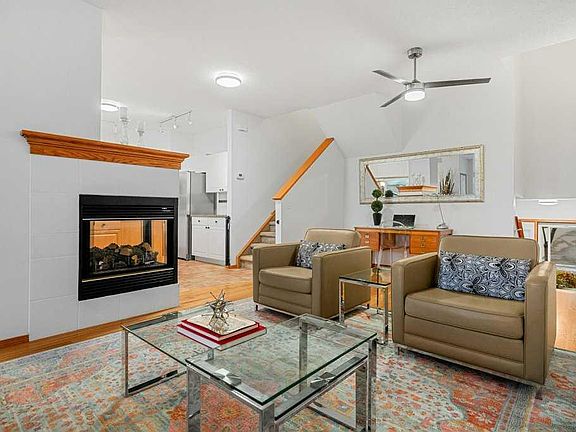 Largest unit in the complex with over 1,700 sq. ft. above grade (just under 2400 sq.ft total developed)of living space! This rare and spacious 4-bedroom, 4-bathroom townhome is located in the desirable lake community of Sundance, offering lake access and close proximity to transit, all levels of schooling, shopping, and multiple parks. Features include a double attached front garage with driveway parking for two additional vehicles, 9 ft ceilings on the main floor, an open-concept layout, and a cozy three-sided fireplace. The home has been well maintained with numerous updates, central A/C, including newer kitchen appliances, vacuflo system, upgraded bath and kitchen fixtures, a newer hot water tank, & recently replaced toilets. The top level features a large primary bedroom with a full ensuite, while the split-level design includes an upper laundry room, another full bedroom with its own ensuite, and a spacious third bedroom. The fully developed lower level offers a large fourth bedroom, perfect for guests or a home office. Enjoy maintenance-free living with a sunny, south-facing deck ideal for relaxing or entertaining.