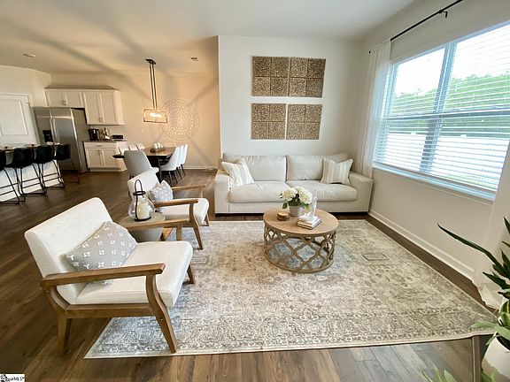 Located in Brookside Farms, this 2023 D.R. Horton-built Craftsman ranch with 4 bedrooms, 2 baths, and 1,764 sq ft of stylish, single-level living. The open floor plan features a sunlit living room, dining area, and a chef’s kitchen with granite countertops, Whirlpool stainless steel appliances, a large island, and walk-in pantry. The private primary suite includes a walk-in closet and spa-like bath. Three additional bedrooms provide flexibility for guests, office, or playroom use. Enjoy a covered porch, fenced yard, and access to community amenities—2 pools, pickleball court, playground, and clubhouse. Conveniently located near Downtown Greer, BMW, GSP Airport, top schools, and more. Furniture negotiable. Schedule your showing today!