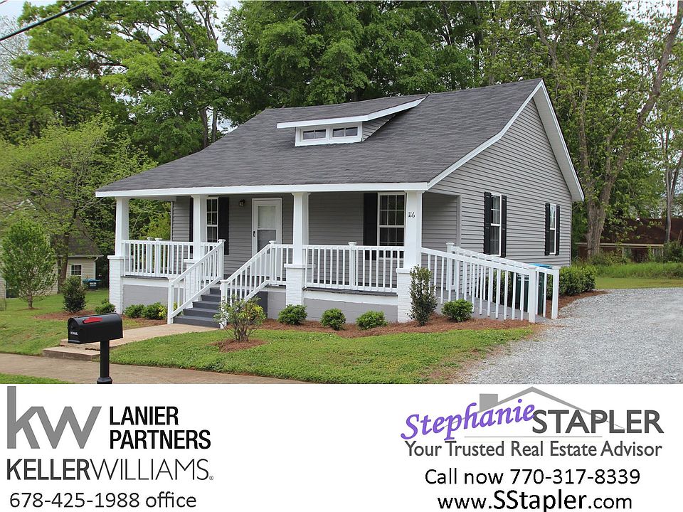 Downtown Commerce GA - Jackson County. Special Financing Available. Charming Renovation with new: paint inside and out, laminate flooring, central HVAC, white shaker cabinets, countertops, appliances, light fixtures, & plumbing fixtures. 2bd / 1ba with dining room, kitchen and laundry closet. High ceilings & trim throughout. Each room has new electric fireplace and mantle. Kitchen has pantry, eat-in area & black appliances including dishwasher, smooth surface range and built-in microwave. Rocking chair front porch with handicap ramp & covered back deck. Vinyl siding. Walk to shopping and park. Quick commute to I85. Serviced by Commerce School System