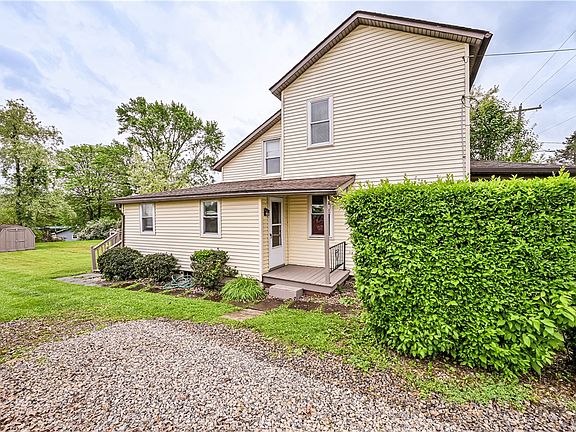 Nestled in a park like yard is this charming 2 bedroom one bath home that offers comfort and convenience at every turn. Step inside to discover a welcoming dining room with built in China cabinet, perfect for showcasing treasured dishware. The fully equipped kitchen boasts ample counter space and room for a small table if you prefer an eat in kitchen atmosphere. New kitchen counters, new bathroom door, professionally cleaned carpets and new carpet in the 2nd bedroom. The first floor convenient laundry ensures effortless chores. Step outside onto the expansive wraparound deck, where you can enjoy the sunny days and the views of your park like setting. A sprawling level yard provides plenty of space for outdoor recreation or a beautiful garden. This two bedroom home offers a great blend of comfort and functionality for those seeking a place to call home. Off Street parking too.