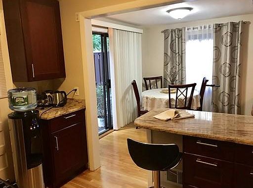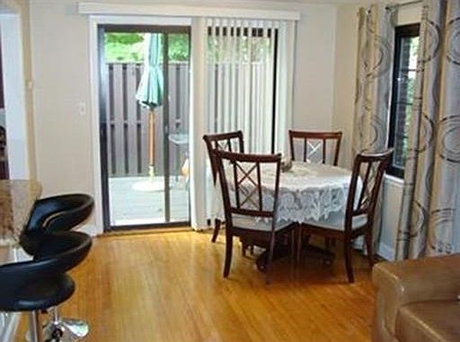 Renovated 2BR townhouse with parking, central AC, in-unit laundry, plenty of basement storage and private patio. Both bedrooms can accommodate queen to king size beds and have generous size closets. Gleaming hardwood floors, renovated kitchen featuring granite countertops and stainless appliances, breakfast bar and dining area between the kitchen and living room, renovated bathroom. Enjoy a semi-enclosed patio off the dining room and a swimming pool. Condo rules don't allow pets and smoking. Parking spot #466. During winter months management company lets residents know about additional parking spaces people can rent for $48-50/month on a first come first served basis. Showings start on June 8, 2019