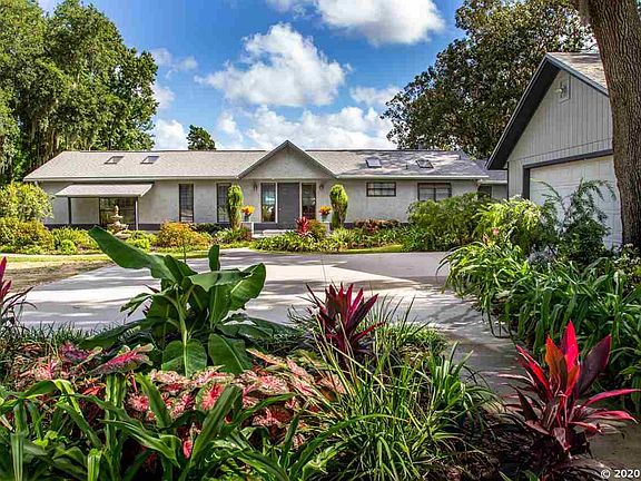 Welcome home to Paradise at Mermaid Haven! This beautiful lakefront home with lush landscaping is like a tropical oasis on Cowpen Lake in Hawthorne, Florida. This 4/3 + 4 car garage home shows pride of ownership and is move-in ready. Enjoy the comfortable layout with sweeping views of your private sand beach, ~70 ft of waterfront and lake views. Cowpen lake is a private, spring-fed, clear-water, sand-bottom lake perfect for boating, water skiing, fishing and swimming. Kitchen features granite, newer SS appliances, farmhouse sink, double oven & porcelain tile. Open living/dining room w/ fireplace. Unique room off the kitchen features a jetted jacuzzi and a sitting area to drink morning coffee or read a book. Indoor laundry room w/ W&D. In the past 10 years: a 20X30 garage added, bathroom remodeled, plumbing upgrade, electrical upgrades, full kitchen remodel, replaced doors, replaced roof and AC and more! Enjoy two patio areas, plenty of fenced yard for the pups and landscaping straight out of a magazine w/irrigation. And wait until you see the ~1,000 square foot boat house w/ AC & power perfect for sunrise, sunset, gatherings and the best views!! This home is perfect for a full-time residence, weekend getaway or even an Air BnB.
