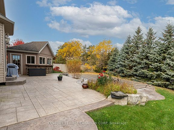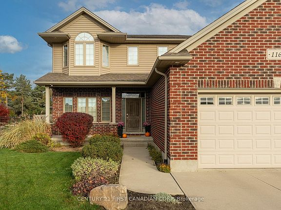 Discover the private backyard oasis in Lucan that youve been waiting for! Nestled on a quiet crescent, this pie-shaped lot boasts an impressive 109' at the back of the property, adorned with mature trees. Welcome to 116 Radcliffe Cres, a spacious two-story home featuring 2,100 sq ft of living space, a finished basement, an attached three-car garage, concrete laneway and an inviting inground pool surrounded by stunning professional landscaping and stamped concrete.Upon entering the home, you'll immediately notice the main floor office, which is ideal for anyone who works remotely. Off of the garage is an oversized mudroom with access to backyard. Tons of natural light pours into the kitchen and living room from the large back windows and patio door. The living room is complete with a gas fireplace, perfect for cozying up during the cooler months.Head up to the second floor, where you will discover three generously sized bedrooms. The primary bedroom features his and hers walk-in closets, a vaulted ceiling, and a 5pc ensuite bathroom. Additionally, the second floor includes a 4 pc main bathroom, along with two more bedrooms, both offering plenty of storage space, with one featuring a walk-in closet.The basement features the 4th bedroom, large rec room, 3pc bath, a bar and lots of additional storage space.During the summer months, your backyard will likely become your favorite place to spend time. It serves as an ideal setting for entertaining family and friends. The inground saltwater pool is perfectly sized for family fun. The pool house includes a bar and an unexpected bonus: a hot tub for year-round enjoyment. With professional landscaping, a beautifully finished pool, and stamped concrete, these features greatly enhance the home's appeal. The backyard also includes a bonfire pit and garden shed.New updates include a new owned water heater (2024), new kitchen fridge (2023) and stove (2022), new awning from London Awnings (2022) and new pool liner (2022).