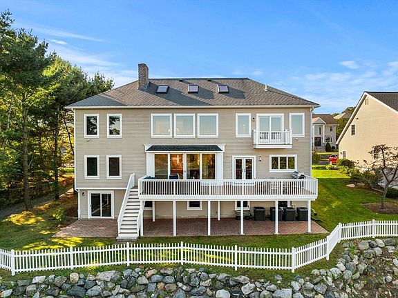 Rare offering in Prestigious Pigeon Hill Estates captures breathtaking direct skyline views of Boston! Perfectly set on a cul-de-sac, this custom-built Colonial features soaring ceilings, brick front, spacious rear deck ideal for entertaining, walk-out lower level, 2-car garage & amazing views from every rear-facing room. Enter the dramatic 2-story foyer leading to the grand family room w/ floor-to-ceiling windows and traditional fireplace. The open layout flows seamlessly into the kitchen, with French doors opening to a large deck overlooking Boston. The 1st floor also offers a living room, dining room, office/br, full bath, laundry & garage access. Upstairs, the primary suite features French doors to a private balcony, spa-like marble bath, dual vanities, whirlpool tub, and two walk-in closets. Two additional bedrooms share a full bath, while a 4th bedroom includes an en-suite. Finished walk-out lower level offers endless options & a walk-up 3rd level allows expansion.