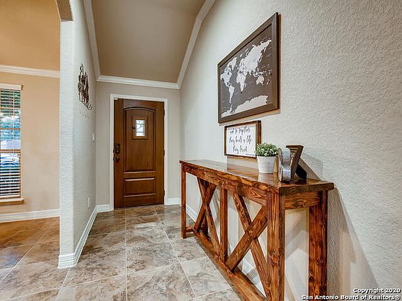 Pride of ownership abounds in this beautifully maintained Cibolo Valley Ranch home. Offering a light-filled, open floor plan where elevated ceilings can be found throughout. Upgraded dimming LED lights in kitchen and living area. Owner's retreat boasts a sliding barn-door, double vanity, walk-in closet, and spacious soaking tub. Backyard features a custom deck and pergola with porch swing and built in seating area - creating the perfect space for intimate evenings or entertaining a crowd. Enjoy continued privacy as this property backs up to a greenbelt!