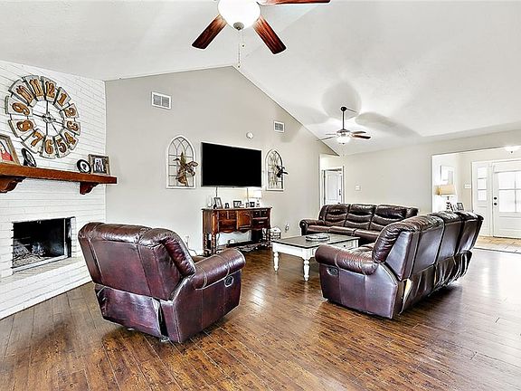 Step into the spacious living room boasting vaulted ceilings that soar to 10 feet, creating an open and inviting atmosphere for both relaxation and entertaining.
