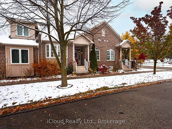 This welcoming BUNGALOW TOWNHOME is located on the outskirts of charming Rockwood. As you enter, the foyer has slate floors, crown molding and the 9' ceilings carry throughout the entire home. The primary bedroom to the left has a large bay window, 3 piece ensuite with a generous glass shower and a large walk-in closet. Across the hall is the main 3 piece washroom and a bright sunny second bedroom currently used as a home office with a large window, built-in bookshelves and a double door closet. Beautiful hardwood floors carry throughout and all the windows have custom California shutters. The combination living/dining room boasts an impressive vaulted ceiling, corner gas fireplace and garden doors that overlook the private fenced yard. You will not lack storage in the well appointed kitchen with a wall of upgraded cabinetry, pantry, granite countertops and a breakfast area. Pot lights and both under and above cabinet lighting make it an inviting place to prepare meals and entertain. A laundry room with additional cabinets & broom/storage closet is conveniently located off the eat-in area. Access to the rear single car garage is from the kitchen as well as an outside door from the fenced in yard. Animal lovers will appreciate the pet door incorporated into the sidelight on the left side of the garden doors that allow their pet to safely enjoy the outside from the custom pet enclosure. This is a freehold bungalow townhome with a common elements condo corporation fee. Roof (2020) Water Heater (2022) Water Softener (2022) Dishwasher (2022) Sump Pump (2023)