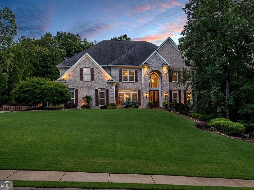 Looking for Tranquility, Timeless Elegance, and Quality? This home offers that and more including 3 finished levels with 5 bedrooms and 6.5 baths, full brick exterior, custom pool with waterfall, outdoor kitchen, and entertaining area complete with fireplace and rock patios that will accommodate large parties plus a covered pavilion in the wooded area of nearly 2 acres for entertaining! You can have it all! Upon entering the grand foyer, you will instantly sense the quality of construction, pride of ownership and impeccable condition of this estate. The two-story foyer is accented with an abundance of millwork and crown molding plus a deep trey ceiling and is flanked by a banquet sized dining room and large office which is accessed through double doors. An abundance of natural light streams in through triple windows in both the dining room and office. Notice the gleaming hardwood flooring which was recently refinished and flows from the foyer through the dining room, office, formal or family room, kitchen and fireside keeping room. You will see the stunning view of the custom designed pebble tec pool and adjoining waterfall from the family room boasting the first of 3 fireplaces. This lovely room also features a coffered ceiling and display cases along the fireplace wall. The floor to ceiling windows allows the feeling that you are surrounded by nature. The large kitchen is equipped with an abundance of stained cabinetry, upgraded granite countertops, slate backsplash, 5 burner gas cooktop, double ovens, microwave, large refrigerator, large breakfast bar and opens to a generously sized fireside keeping room. The desk space in the kitchen is perfect for your recipe books and a drop space for personal items after a busy day! There is also a very spacious breakfast room located by a bay window with a pretty view as well. The pantry which serves the kitchen is OVERSIZED and conveniently located at the hall to the 3-car garage. On the main level accommodation for guests or extended family will be in a large owner's suite. Stepping outside from the kitchen and keeping room there is a large, covered porch with just a few steps to a fully equipped outdoors kitchen with a large grill, burner spot for those party boils, and a beautiful brick fireplace plus an enormous stone patio poolside. A wide rock walkway leads back under trees to a large custom-built pavilion perfect for parties or family gatherings, grilling on large brick grill and bonfires! The rear wooded area is fully fenced and ready for pets. The wide wood stairs embellished with wrought iron spindles to the upper-level leads to a wide loft area perfect for a family library spot. The upper level of this stunning estate is complete with 4 LARGE bedrooms with ensuite baths- each with large closets and a large playroom/media room. The Owner's suite was recently refurbished and is complete with new vanities, light fixtures, flooring, free standing tub, marble surround in oversized shower and the shower doors are rimless. The owner's bedroom is oversized and boasts an elegant brick fireplace and beautiful sitting room enhanced with a wall of windows. The Owner's suite also features a deep trey ceiling. There are wide stairs downstairs to the finished terrace level and this area features large, finished rooms which you may use as you choose- maybe a family room, flex room, theatre room, a full bath, plus plenty of unfinished storage space, large workshop area and storm room. Distinctive features include a new roof, new hot water heaters, new pool pump, butler's pantry between kitchen and dining room, large upper-level laundry room, garden flowerpots are auto watered, plenty of driveway parking as well. Rock steps lead to the finished terrace level from the rear yard Better than new home with so many features including a new roof... make an appointment to see this home and make this your slice of paradise! Located with easy access to Alpharetta, Ball Ground, Canton and Cumming.