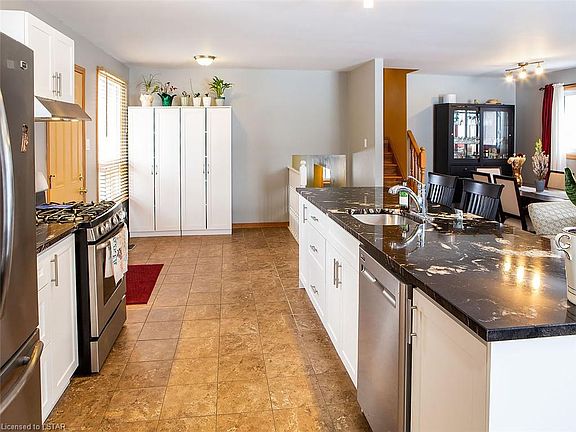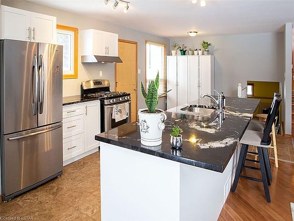 Welcome home! Situated right next to London's premier waterpark and outdoor attraction East Park, this massive backsplit features 4 bedrooms (3+1) and 2 full baths. The main floor boasts a large upgraded kitchen (2018) with granite countertops and stainless-steel appliances (gas stove), and tiled floors for the wet areas. There is plenty of countertop and cabinet space as well a very large breakfast bar. The hardwood floors throughout the main floor cover the family and formal dining area. The ample amount of windows bring in plenty of natural light. The three bedrooms upstairs all have laminate flooring and features a cheater en-suite for the master. The massive master bedroom, decorated beautifully, overlooks the backyard. Off the kitchen there is access to the backyard and elongated driveway! In the lower level you will find a large rec room space, the fourth bedroom & a 3 piece bathroom. This home offers lots of storage in the unfinished basement level or the opportunity for more finished space. Lots of recent updates include roof 2018, furnace/AC 2014, windows 2010, bathrooms 2010, carpet 2018, kitchen 2018. This is a perfect place to call home! Lots of space ! Floor Plans in pictures. Virtual Tour Available!