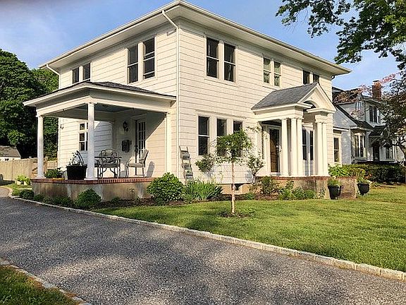 A beacon amongst the historic row of homes on Riverside Drive, one cannot help to appreciate the well-balanced architecture, the portico with robin's egg blue ceiling and naturally finished front door is stand center as the focal point of the facade. The Porte Cochere and sunroom offers breadth and balance from the curb. Within is a perfect marrying of traditional architecture and modern convenience. Large rooms, generous closets, gleaming wood floors, and tasteful design accents adorn the interior. Set on a one third acre gently rolling parcel abutting County Owned land, the rear yard is a sanctuary with a free form in ground pool and adjacent awning perfect for gathering on summer nights. All located within close proximity to theatre, nightlife, fine dining, Riverwalk attractions, farmer markets, and the North Fork art scene