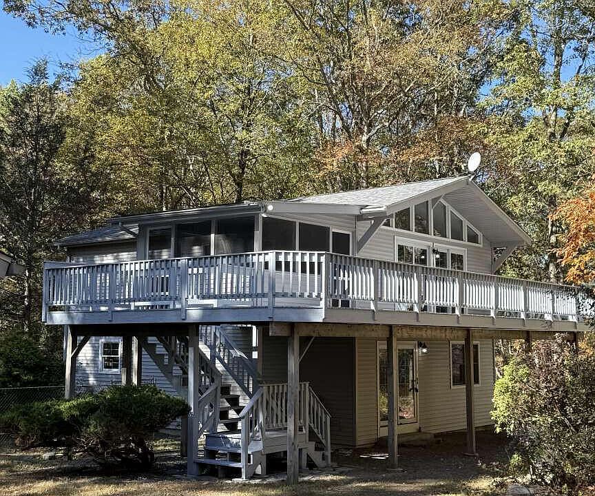 Welcome home to your beautifully remodeled raised ranch in amenity filled Hemlock Farms. It's the perfect time of year to enjoy not one, but TWO, wood burning fireplaces. Recent updates include new: kitchen, bathrooms, vinyl flooring, septic, roof, lighting and more! 2 spacious living areas offer plenty of room for family and friends. Upgraded wood windows, sliders & exposed beams give a rustic feel. There is a screened in porch & expansive deck for outdoor living as well! A massive 2 car garage, horseshoe driveway and shed complete the oversized property that has a garden-like feel with mature landscaping. Ample storage, utility room with washer and dryer and new AC/Heat pump splits add to the features of this unique yet practical home. Come see the value this property has to offer today!