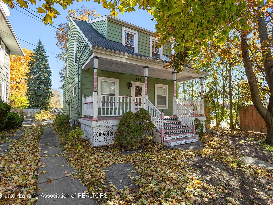 Just steps from the lively Michigan Avenue corridor—where local coffee shops, restaurants, and neighborhood favorites line the street—this classic home offers timeless charm with everyday comfort. Enjoy the convenience of being minutes from downtown Lansing and Michigan State University while living in one of the city's most walkable and community-minded areas. The star of the show is the huge covered front porch...essentially a second living room all summer long. Inside, you'll find beautiful original trim, hardwood floors, a stunning stone fireplace, leaded glass windows, and a bay window in the dining room that floods the space with natural light. Every corner radiates character and craftsmanship. The kitchen is enormous, featuring an island, pantry, and plenty of cabinets and counter space for cooking, gathering, or late-night homework sessions. Just off the kitchen, the enclosed mudroom makes the perfect drop zone for muddy boots, soccer bags, and backpacks. A convenient half bath rounds out the main floor. Upstairs, you'll find three generous bedrooms with huge closets and a full bathroom. The home also includes a full basement for storage or future finishing potential, plus a lovely backyard shaded by mature trees. The charming playhouse just needs a little love to become the ultimate hideout or backyard studio. A beautiful mix of history, warmth, and walkable urban living—this one's easy to fall for.
