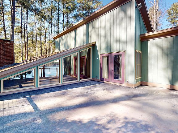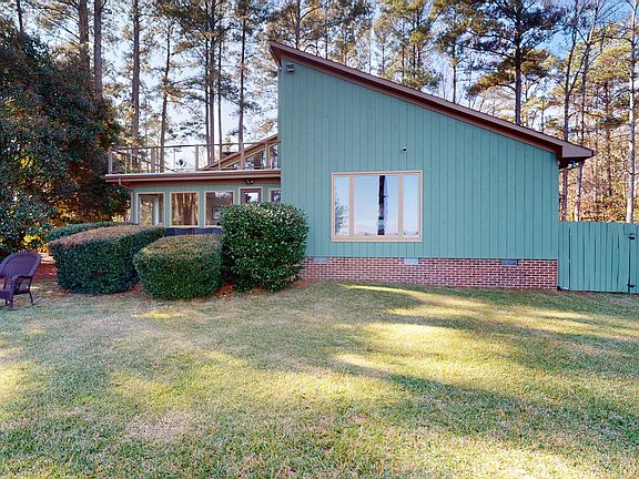 gas range/oven, Upgraded SS appliances, Tiled floors, leathered granite counters and hammered copper sink. Great for Entertaining. Formal dining room close to kitchen for serving. Living room has masonry wood burning fpl, wet bar, and Vaulted ceilings. Cozy Large Office/parlor with fpl half bath , oak and peg floors. Tiled Carolina room has views that look out over grassed yard and wide lake views. Main level master bedroom with remodeled tiled bath plus walk in closet. Second floor Overlook and guest Bedrooms with full bath. Laundry room with cabinets and counters plus large utility sink. Attached 2 car garage. Outdoor amenities include beach area set in recessed stone embankment and recently decked boat dock. Roomy back lawn with some mature trees. Lakefront wraps around left side of home for additional wildlife attraction. Fenced small boat and equipment area.