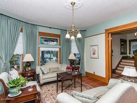 Magnificence and charm when you step back in time in this incredible Victorian estate! Enjoy the craftsmanship, preservation and care as you experience this beautiful example of history. This home is on the Prescott Historic Home Register and acknowledged in magazines and historical reports for its unique and irreplaceable features, this home boasts a parlor, sitting room, dining room, amazing chef's kitchen all keeping the charm of the era. Original moldings, pocket doors, glass and accents. Beautiful fireplaces converted to gas with the original design, Large Master suite, perfect guest bath with custom amenities. Set on an oversized lot with a park like setting, privacy, Large guest house, garden, green house, beautiful patios and porches surround. 2 car garage with addition 2 ca