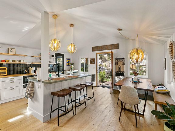 Gorgeous home in the heart of a sought-after community in Ojai. Tastefully updated with a comfortable flow. Newly installed stunning White Oak engineered wood floors for practical living. Newer smart appliances, and remodeled kitchen and bathrooms. Vaulted ceiling in the kitchen creates an airy and modern feel, the counters, island and backsplash are quartz and marble, a gas range, wine refrigerator and banquette dining area round out the room everyone will want to gather in. The upstairs bedrooms have Topa Topa views, and a quiet tree house feel. Large yard with mature trees and landscaping, decomposed granite paths and rock walled planters, a back gate entry as well as a gated front entry on the street. Walk score is high, close to shopping, restaurants, hiking.