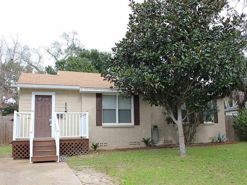 Nicely updated, partially furnished cottage located in desirable Navy Point Subdivision. This little gem is a must see. Beautiful wood laminate flooring throughout, newly renovated bathroom, newer HVAC - replaced in late 2014/early 2015, roof replaced in 2008, attached large laundry room, beautiful foyer, separate living/dining room within a nicely sized shared space and 2 good sized bedrooms. This home lives large and offers a nice size fenced lot with yard building and a double gate with additonal parking in back. It's perfect for your boat or RV. This one is sure to make the top of the list!