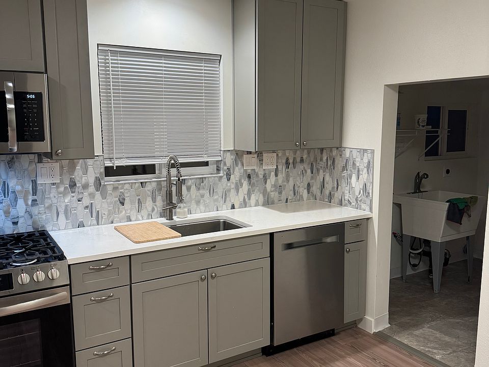 Freshly updated and painted kitchen (great room), bath. New cupboards and quarts counter. New dishwasher, range, microwave. New bath vanity with quarts top. Upstairs rustic bonus room/3rd bedroom. LVP flooring throughout. Laundry services provided (optional). Close to downtown, wildride pub. Two photos were enhanced with staged furniture. The exterior is still a little rough. Some work to be completed spring of 2026 No smoking allowed. 12 month lease, other options available.