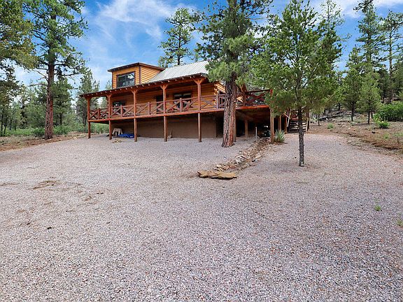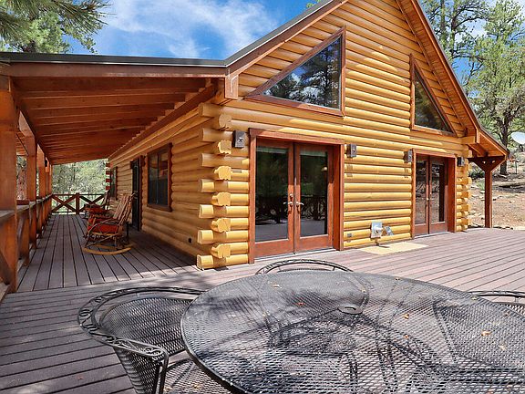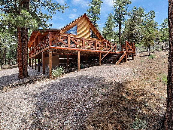 Fabulous 10 yr old custom 8″ D log home that has been meticulously maintained by loving owners in the Timberlake Ranch mountain community. The quality and craftsmanship are immediately apparent inside and you'll love relaxing or entertaining on over 1100 sq ft of covered & open deck space while taking in the amazing views of the red sandstone bluffs that Timberlake is famous for. And with a 2 stall horse barn and approx 3 acres of fenced pasture u can bring the horses too! Get out of the city now and come enjoy the unique mountain lifestyle with clean crisp fresh air, cool starry nights, friendly neighbors, local farmer's markets, community events, private Ramah Lake access, HOA maintained roads and abundant wildlife incl deer & elk often roaming right thru your property.