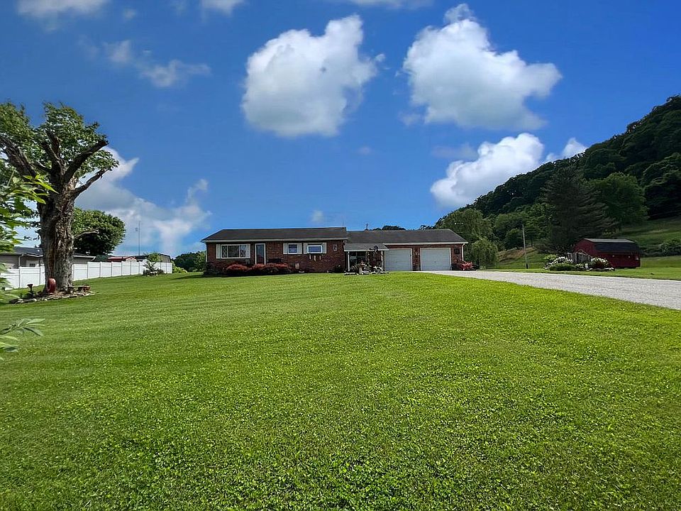 Looking for a RETIREMENT FRIENDLY Ranch Brick home in Greenup? Then look no further, this home is a 1-floor plan with 1505 sqft 3 BR's 2 Bathrooms and a 2-Car attached garage sitting on a nice big flat lot with river access! The Kitchen has nice oak cabinets and comes fully equipped with all appliances so it'll be ready for you to whip up some sides while the hubby is grilling hamburgers and hotdogs this summer. Sit out on the covered front porch area that overlooks the large flat front yard or go outback for more privacy! (This home is not considered in the flood zone per an insurance company and appraiser).