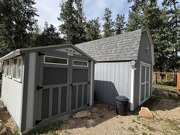 Nestled between Idaho Springs and Georgetown, this 4br/2ba home offers a park like setting on nearly half an acre. Just a few yards from clear creek it's surrounded by mountains and quaking aspens. It's easy to spend most of your time outdoors in the garden where you'll find five raised garden beds, a key hole garden, a large fenced in area, and rose garden. Take nightly walks through the neighborhood along the creek and down to the open space or relax in front of the custom Colorado Red Rock gas fireplace. The fireplace is a JOTUL and offers a thermostat setting that keeps the home warm without needing to manually turn it on or off.The home has been upgraded throughout with 20ml waterproof plank flooring and the washer replaced, both in 2024. Bring all your toys, because there's plenty of parking space. There are also two outbuildings. The first is a 16x12 barn style with loft and the second can be used as a greenhouse with rain barrel set up. Close to ski areas, hiking, rafting, biking, and ATVing, yet also within about 45 minutes to Silverthorne/Dillon or Lakewood. Sold As-Is. Buyer to confirm all details.