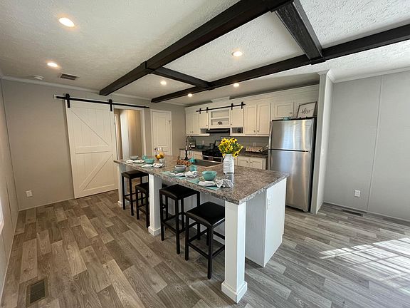 Gorgeous 2023 Redman Advantage ll singlewide move in ready and waiting for a new owner! Conveniently located just seconds from 23 in South Bloomfield for easy commute. This beautiful brand-new home offers the modern farmhouse look! Nice size deck for family, wide open concept with the kitchen and family room, HUGE island for family gatherings with centered farmhouse sink, ss appliances, loads of counter space and cabinets along with a pantry! One end of the home is the master suite with large shower and 2 walk in closets and the laundry rm which is separated from kitchen with a beautiful barn style door that is sure to get compliments! The other side of the home offers 2 bedrooms with a hall bath which includes a tub/shower combo. Must be park approved prior to offers.