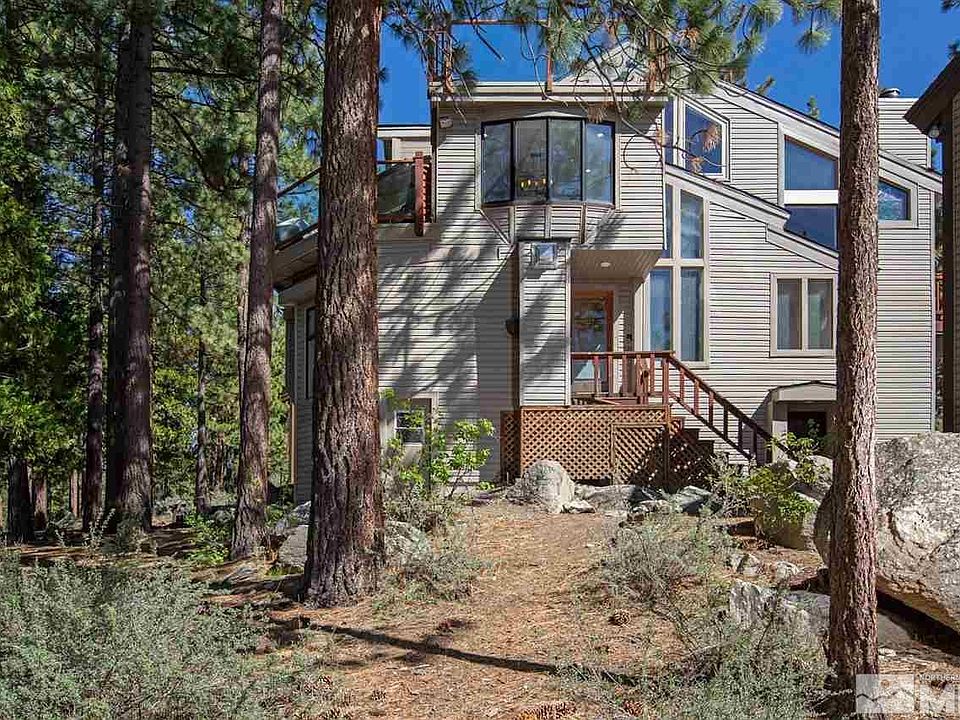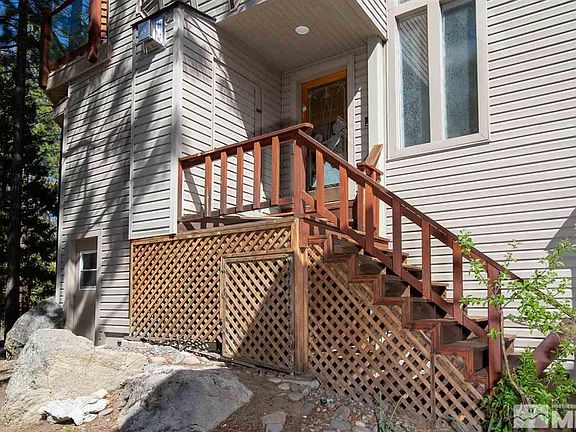Very private 4 story, 4 bedroom, 3 full bath townhome full of windows featuring double Master, remodeled kitchen and bathrooms, living room, sunroom with unobstructed view of forest, sitting room, den/media room, and formal dining room. Four separate patio/decks: BBQ and firepit off kitchen, forest view off guest bedroom, and rooftop with view of Lake Tahoe (all private), and dining deck off living room.