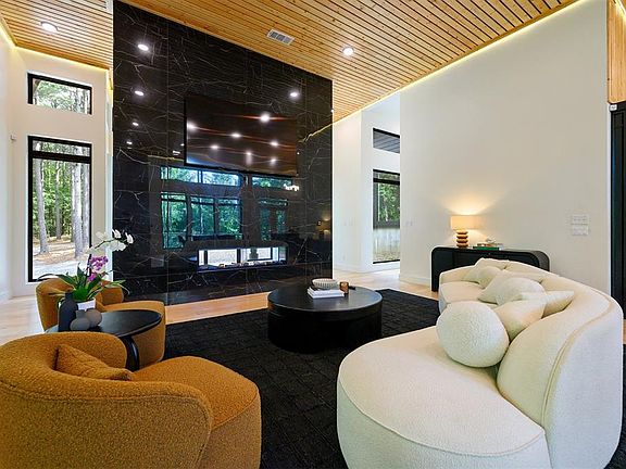 Striking waterfall islandElegant living spacesUnmatched privacy and tranquilityHigh-end black stainless-steel appliancesWine coolerGourmet kitchenBeautiful glass see-through fireplace