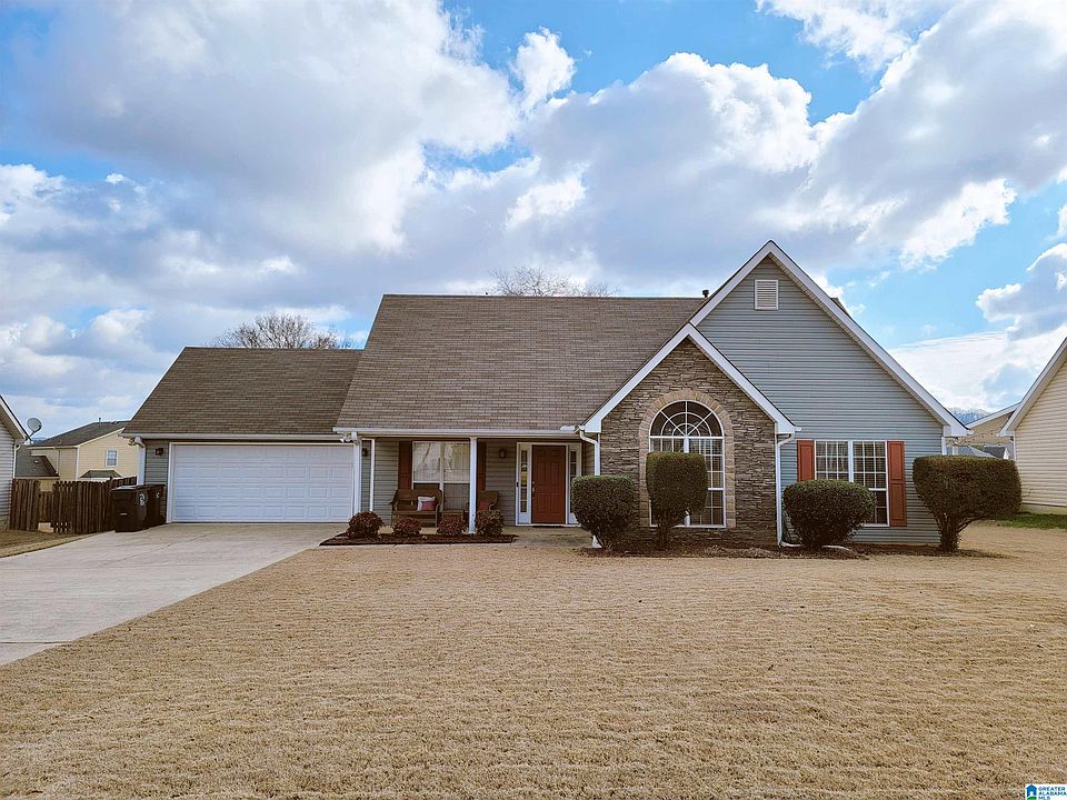 Stunning Home in Pelham! This 3 bedroom, 2 bathroom home is ready for you. Stepping into this home from your covered front porch the foyer opens to the living room, dining room/office and hallway to secondary bedrooms, bath & laundry. High ceilings greet you in the living room, gas log fireplace, tile flooring, ceiling fan and open to the kitchen and eat-in dining area. The kitchen was remodeled in 2020 and provides spacious quartz countertop space, breakfast bar, stainless steel appliances, open to dining room/office and access to two car garage. Master bedroom is located off living room, high ceilings, ceiling fan, walk-in closet, private bathroom with two sinks, separate shower and garden tub. Secondary bedrooms and next to each other, one with high ceilings. Full bathroom outside bedrooms and laundry closet. Patio door located off living room to oversized open patio in the fenced backyard. Bonus is door off patio to garage.