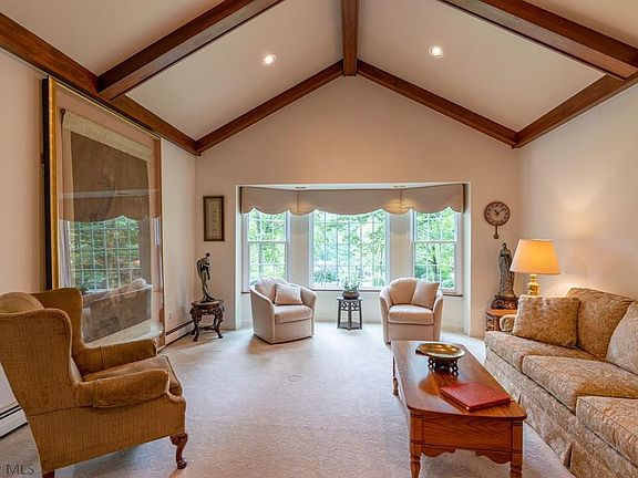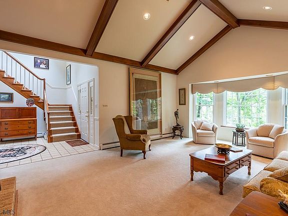 You'll be surprised by the space this home offers. It may look like a cottage but there is space for everyone. There is a first floor owners' suite complete with a large walk-in closet, an adjacent bath with jetted tub, tile floors, double (but separate sinks) and plantation blinds. Need a home office? No problem....it's right next to the MBR and offers built-ins galore. The living room boasts vaulted ceilings with beautiful wood beams, a gas fireplace and built-in shelving. The kitchen and breakfast area look right out to Nature's Paradise....plus there is a Sun Room with a full wall of windows....perfect for watching deer and birds. Upstairs you'll find 2 additional BR's, a full bath and 2 bonus rooms that could be used for crafts, an office or a playroom. New roof and radon system!