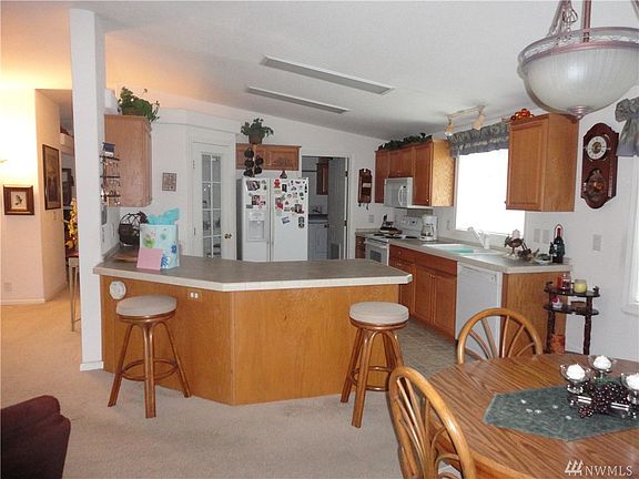 This beautiful spacious well kept home has it all! Entry opens to open concept living,dining&kitchen with eating bar.Large living rm has free standing propane stove.Dining space opens onto covered deck for outside access.Lg.laundry rm doubles as mud rm& back yd entry.Spacious master bdrm with master bath &walk in closet.Behind carport is a huge shop with fr.standing wood stove,storage rm,craft area,includes a bath rm & extra bdrm.Back yard patio,garden space,planters & fire pit for outdoor fun.