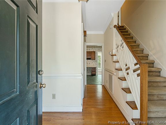 Situated on this serene cul de sac in the heart of Haymount, this charming cottage style home has 9' ceilings downstairs, hardwood floors throughout the downstairs except for the kitchen, sunroom & baths. The living area is open to the dining area & features a beautiful antique fireplace mantel & the formal dining area has a Waterford crystal chandelier. You can enter the sunroom from either the dining area or the kitchen which is great for entertaining. The kitchen is quite large with an island & walk-in pantry & breakfast area. The primary bedroom is downstairs w/crown molding & chair rail & en suite bath. The sunroom has brick flooring & overlooks the back yard which features an array of flowering shrubs-so beautiful in the Springtime. There is a deck off of the sunroom for grilling or just relaxing in the sun. Upstairs are two bedrooms, hall bath & walk-in storage area. This home is ready for a new owner to add their decorating touch & make it their charming Haymount cottage.