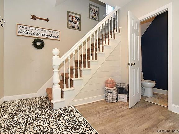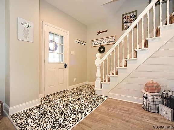Charming home is the pride of ownership. This move in ready home features light and airy open concept main floor, easy to care for premium luxury vinyl plank flooring, white kitchen cabinets, newer stainless steel appliances (only 2 years old) & granite counter tops. Main floor bedroom could be used as a home office space. The second floor features the master bedroom with large walk-in closet, an additional bedroom and nice sized full bath. Enjoy summer nights on the front porch or entertain in the large back yard and partly covered deck accessible from the dining area. Two storage sheds in the backyard, large one is used as a workshop space with electricity. Double sized lot, rare find for Scotia. 2 Rinnai units are under a year old. Upgraded windows on the 1st flr, new lighting & more!