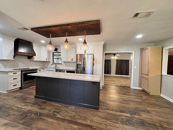 This property showcases extensive custom upgrades and attention to detail throughout. Featuring 3 bedrooms, 2 baths, and approximately 2,551 square feet living area. Outside you'll find a 7-year-old roof, a well replaced in 2019, fenced backyard, double driveway/parking pad, updated windows, and a septic drain field replaced within the past several years. Inside, the kitchen has custom soft-close cabinetry, Quartzite countertops, stainless steel appliances, a built-in microwave drawer, recessed lighting, custom chandeliers, wood-look tile flooring, and a custom vent hood. The living and dining areas share similar finishes, including vaulted ceilings with stained tongue-and-groove pine, ceiling fans, and a built-in workspace. The primary suite offers a spacious bedroom, a 12x12 walk-in closet, and a private bath featuring a dual-sink granite vanity and a walk-in tile shower with dual shower heads. The additional bedrooms also include ample closet space. A nicely sized back porch provides a comfortable space for relaxing or entertaining. This home blends craftsmanship, comfort, and functionality—schedule your showing today.