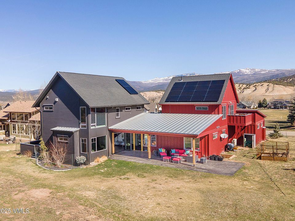 The open-concept layout features a sleek modern kitchen with an abundance of light, quartz and stainless steel countertops, a Bosch oven, induction cooktop, large Frigidaire fridge/freezer, and ample storage in clean white cabinetry. Tucked nearby, a hidden ''secret'' office adds a fun and functional touch. The bright and airy great room captures panoramic views of Castle Peak. The Sawatch Range stuns from the living room, primary suite, and vast outdoor rear, covered entertainment patio.