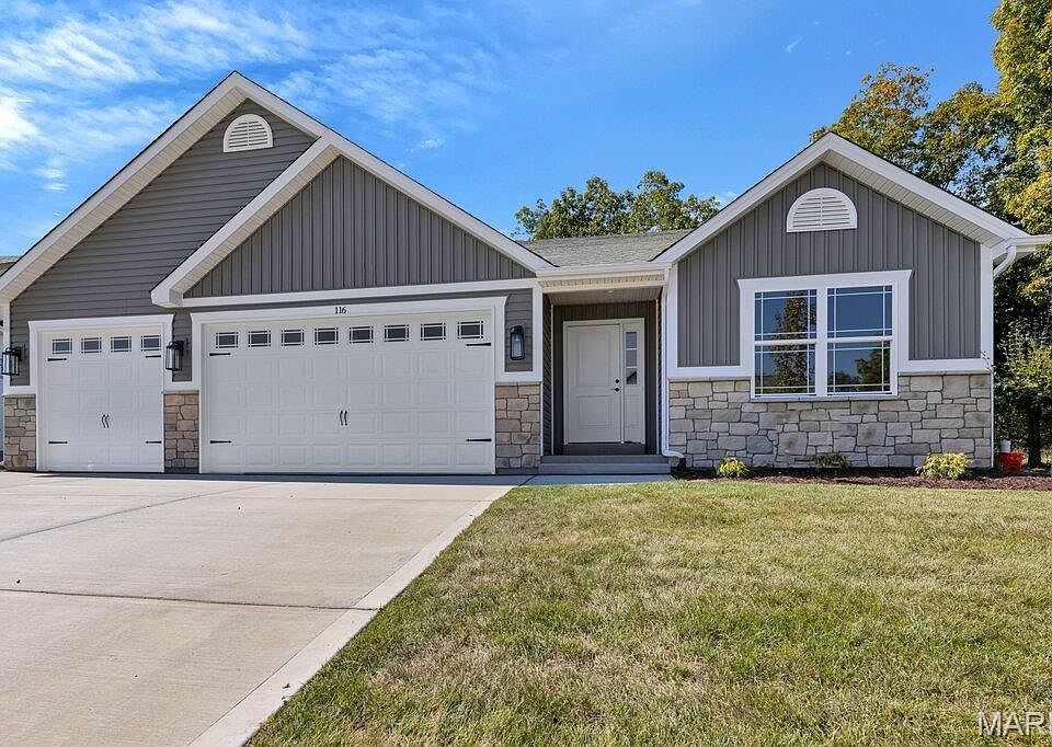 Move-In-Ready today! New Construction! Don't miss out on this incredible new build from Jeff Kelly Homes! This beautiful new home is packed with luxurious options and features that are sure to fit your dream home needs! Private Level Lot At The End Of The Street, Backing To Trees! Fully sodded yard, sprinkler system, landscaping, iron mailbox, wider driveway, 4ft high stone on front elevation, upgraded siding with board and baton in gables and Azek trim surrounds, large upgraded coach lights on garage and front porch, enclosed soffits, architectural shingles, low e windows with prairie grills in front and rear of home. Interior features include: LVP flooring in entry hall, kitchen, laundry room and family room, upgraded carpet in bedrooms and basement, LVT in bathrooms, 11ft ceilings in kitchen, family room, tray ceiling in master bedroom, upgraded black knobs, hinges, lighting and plumbing fixture package, crown molding in kitchen, family room, master bedroom and master bathroom, granite countertops in kitchen and all bathrooms, tall custom kitchen cabinets shaker doors and soft close with lots of storage space, large island with overhang and more storage, tray microwave, gas range, vent hood, ice maker line hookup for fridge, main floor laundry, walk in closet in master bed room, dual sinks, separate commode, free standing tub and separate shower, stairwell to basement has a beautiful white painted railing with black aluminum spindles, fully finished basement with family room, 1 bedroom and 1 bathroom, patio in the backyard and so many other amazing features that are a must see in this fantastic new home! This one won't last long! Schedule your showing today!