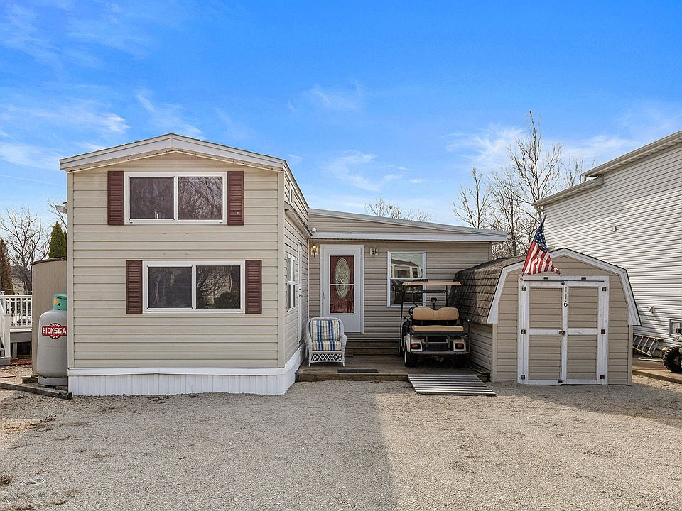 Charming waterfront park model in Shadow Lakes! Plenty of natural sunlight with windows throughout. This one bed also has a large double loft, eat-in kitchen, an addition and sunroom. Great for entertaining guests and family as you grill out on the back deck. Sip a cup of coffee in the quiet of the morning, in the sunroom or in the addition, as you gaze out onto Shadow Lake. Perfect for a summer getaway or stay year round. Float around the lake, hang out at the clubhouse or the pool. Unwind and relax around the fire pit as you roast marshmallows around the fire or cast your fishing line out onto the lake. Reach out to schedule your viewing today!!
