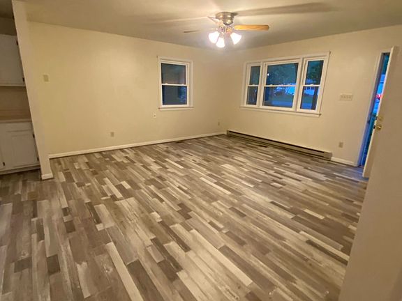 This 1400 sq. feet rancher has hardwood flooring, bathrooms- vanities, toilets and tile, low E windows, central heating and AC, stainless steel appliances, washer/dryer, and water filtration/ water softener system. Open-concept kitchen to family room, Master walk-in closet, and lots of storage space. The home has a large back yard, deck and two large sheds. Partially fenced in backyard.