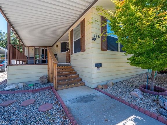 Welcome to 116 Via San Miguel, a spacious home in the delightful community of Rancho Paso. This lovingly maintained and upgraded property sits on owned land and offers a comfortable and inviting living experience. As you arrive, you'll appreciate the extra-deep covered carport. Step inside to an open floor plan featuring two living rooms, two bedrooms plus an office, two full bathrooms, and a spacious kitchen and separate laundry room. The kitchen boasts modern appliances, ample cabinetry, and a pantry. Laminate flooring runs through the kitchen and under the carpet in the family and living room. At the front of the home, enjoy a covered porch perfect for relaxing with your morning coffee. The living room, with beamed ceilings and generous square footage is perfect for entertaining or could be sectioned off as an additional bedroom. The second living room features a sliding glass door to the front porch, a dining area, and an adjacent office. The primary suite with an en-suite bathroom has dual sinks, a sunken tub, a separate stall shower, a walk-in closet, and a sliding glass door to the backyard. The large guest bedroom with ensuite guest bathroom has a recently renovated shower. The sizable laundry room includes cabinetry and a built-in desk. Outside, the backyard boasts a paver patio with a custom overhang for shade and updated vinyl fencing installed a few years ago with a 30-year transferable warranty. Additionally, there's a convenient storage shed at the carport.Recent updates to the home include new lighting, a new roof in 2019, updated central heating and air conditioning, re-leveling, updated windows, and more. As a resident of Rancho Paso, you'll enjoy the newly remodeled clubhouse, in-ground pool, beautiful picnic and BBQ areas, and more. Plus, you're just a couple of minutes from shopping and five minutes from medical services, restaurants, tasting rooms, and more.