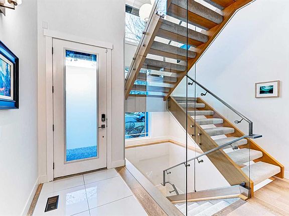 Welcome to this exceptional detached 3-storey infill in Parkdale’s prestigious Golden Triangle, located just steps from the Bow River. Featuring 4 bedrooms, 4.5 bathrooms, and an ICF foundation. This executive home offers nearly 3,500 sq. ft. of beautifully designed living space with modern craftsmanship and timeless appeal. From the moment you arrive, mature landscaping and west-facing windows create stunning curb appeal while filling the home with natural light. Inside, soaring vaulted ceilings, glass and stainless-steel accents, and sleek contemporary millwork define the open, airy feel. The grand foyer opens to the second floor, showcasing a striking open-riser staircase with glass railing and a feature wall. White oak hardwood floors flow throughout the main level with 10-foot ceilings, leading into a custom chef’s kitchen with sleek custom cabinetry, modern lighting, upgraded stainless-steel appliances and a quartz waterfall island. The spacious formal dining area connects seamlessly to the living room, where oversized east-facing windows and a cozy gas fireplace provide the perfect space for entertaining or relaxing with family and friends. A bright main-floor office features a sliding barn door and a west-facing glass wall, making it the ideal home office. Upstairs, the second-floor living space offers a sun-soaked loft with a gas fireplace and a multipurpose study nook. The second floor is completed with two large bedrooms, each featuring double closets with the back bedroom featuring a private 4-piece ensuite, a massive laundry room, a four piece main bath and a clever storage nook. The third-floor retreat is dedicated to the luxurious primary suite, complete with large windows, a walk-through closet with custom built-ins, and a spa-inspired 5-piece ensuite featuring dual undermount sinks, quartz counters, a freestanding soaker tub, and a fully tiled glass shower with a rain showerhead. The fully developed basement extends the living space with high ceilings, roughed-in in-floor heating, a large rec/media room, a full wet bar with quartz counters, generous storage, and a fourth bedroom with easy access to a stylish 3-piece bathroom. Outside, the backyard offers a private retreat, including a spacious composite deck and a heated 2-car garage. You can also enjoy the front patio and the mid- to late-day sun and gemstone lights year-round. This remarkable home delivers the perfect blend of luxury, functionality, and location and is just steps from the Bow River pathways, transportation, schools, off-leash parks, and playgrounds. Enjoy an easy 5-minute commute to the Foothills Medical Centre and 10 minutes to downtown. Don’t miss your chance to call this stunning Parkdale property home. Book your showing today!