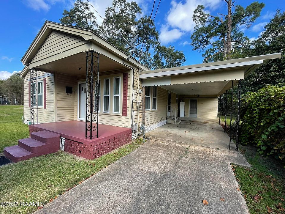 Welcome home! This home is situated in the City of Opelousas and features three bedrooms and two bathrooms. There is a porch at the front door, and a screen door on the front door lets in natural light and fresh air. A patio for covered parties and relaxing is located beneath the attached one-car carport. For additional parking, there is a detached two-car carport at the rear of the house. There is plenty of cabinet space in the spacious kitchen. At one and a half years old, the air conditioner is quite new. The land also has muscadine and fig trees. You really must see this!
