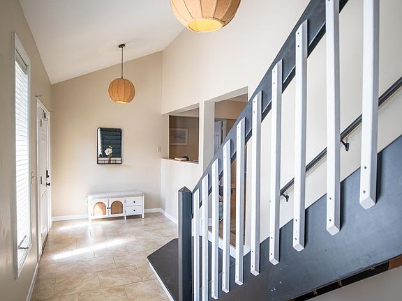 Large patioLow-maintenance yardSleek black cabinetryPrivate master suiteCathedral ceiling entrywayWalk-in closet