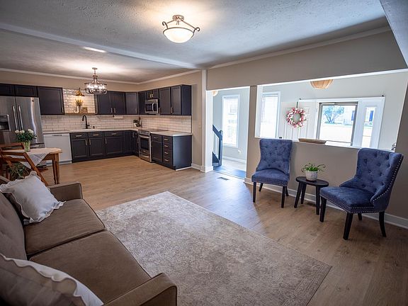Open House Cancelled - Multiple Offers Received Beautiful 1.5-story home offers the perfect blend of style and convenience with 4 bedrooms and 2 full baths. Located close to historic, downtown Etna Green and US 30. Step inside to a cathedral ceiling entryway that opens into a modern, open-concept living, dining, and kitchen area—perfect for both everyday living and entertaining. This gorgeous kitchen stands out with sleek black cabinetry, and a classic white subway tile backsplash. Upstairs, the private master suite features a walk-in closet and a large bath. An additional bedroom is located nearby. Two more bedrooms are conveniently situated on the main level along with a full bath and a laundry room. Enjoy the ease of a low-maintenance yard and relax on the large patio, complete with charming café lights—ideal for cozy fall evenings. The attached one-car garage adds extra convenience and storage.