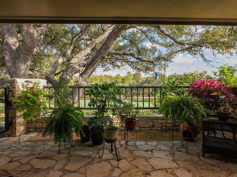 Pride of ownership shows everywhere in this impeccably maintained home in sought-after Village of the Hills! Spacious living area features soaring 2 story ceilings opening onto a wide, private, covered patio tucked away behind a massive century oak and overlooking the 17th hole of the Jack Nicklaus-designed Hills Country Club. 2 ground floor bedrooms with full baths, and additional bedroom (or flex space) with full bath upstairs. Gated community with 24 hr security! Thoughtful updates abound in this move in ready home.Monthly dues for The Masters $185/ Mandatory. Monthly Social Membership $154.80/ Annual Assessment for The Hills $1400
