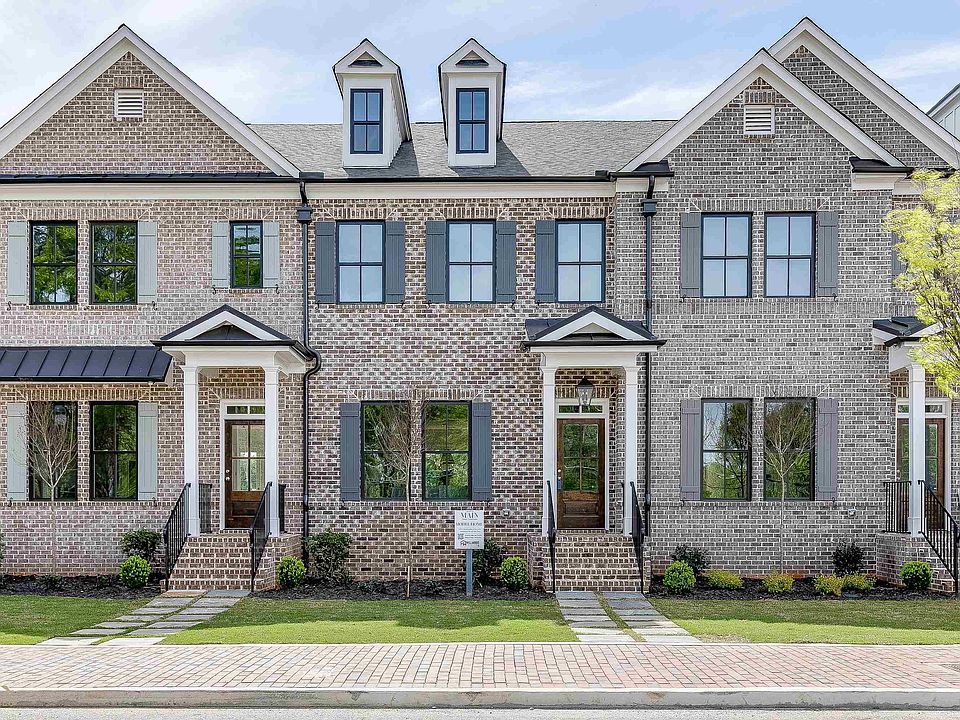 A truly unique and exclusive opportunity on Main Street in downtown Buford-Presenting Townes on Main. These four sided brick townhomes feature three fully finished levels, rear entry parking w/2 car garage, balcony w/plenty of entertainment/relaxation space. No detail has been overlooked when you see the designer colors, finishes and trim package in these top of the line town homes. On the main level, beautiful LVP floors greet as you step into the open concept living, dining, kitchen and a 1/2 guest bath. Living area features built ins and gas log fireplace. Kitchen becomes the main focal point as you see the oversized island, trendy fixtures, lighting, hardware, stainless steel appliances and quartz countertops. Upstairs you will find the oversized primary suite with a large walk in closet and a truly spa like bath with double vanity, quartz countertops, stone and glass enclosed shower. Slip into the amazing soaking tub to truly relax! Lower level has a large flex type room perfect for media room, office, playroom or recreation room. You will also find an additional 1/2 bath on this level. Built-ins/storage as you walk in from the garage. This walkable location puts you right in the center of Downtown Buford's local fine dining (no chains here and a large selection of cuisine to choose from) entertainment and shopping district. The States #1 rated school system-City of Buford completes this great home. This home is Unit #8, an end unit. Inquire about our $10,000 preferred lender incentive. Stock Photos