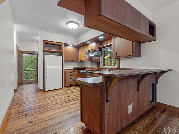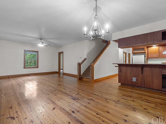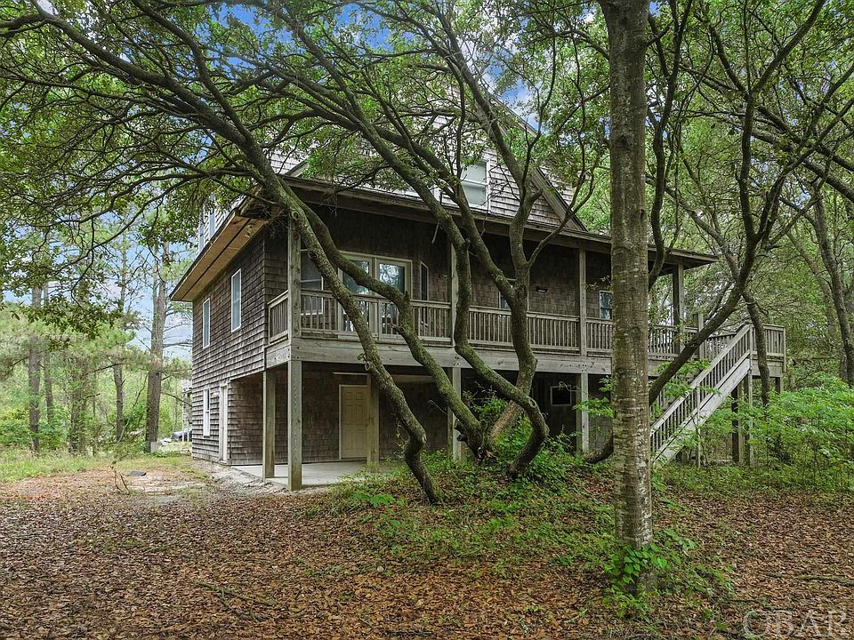 This home is brimming with endless possibilities. Nestled in Nags Head, it offers unparalleled value with its large elevated lot ensuring abundant privacy, all within a stone's throw from the beach. Whether you envision it as your primary residence, employee housing, second home, or an investment opportunity, this property awaits your personal touch to shape it into your ideal Nags Head beach retreat. The unfinished ground floor boasts impressive ceiling height, perfect for conversion into additional living space or a versatile workshop. Adorned with inviting porches shaded by majestic live oaks, this home beckons for moments of relaxation with rocking chairs and afternoon tea. Step inside to discover a welcoming open floor plan on the main level, featuring a generously sized living area flanked with wide plank hardwood floors. The kitchen, adorned with custom wood cabinetry, presents an opportunity for redesign to align with your modern day vision. The gas Jenn Air range is sure to please any cook. Conveniently tucked off the porch, a side entry, laundry, and half bath offer a practical space to shed shoes and worries upon arrival. The primary en-suite, situated in the back corner of the main level, boasts a spacious bathroom with a step-in shower and a separate dressing area seamlessly connected to the laundry room for added convenience. Upstairs, two oversized bedrooms await, complemented by a "split" bathroom featuring two separate sink areas. With ample room to grow, this home captivates with its charming cedar shakes, distinctive gable roof style, and mature trees. Embrace the opportunity to craft your quintessential Nags Head beach cottage within these walls. Home is Sold As-Is. Corporate client will review offers beginning June 10th. Please see additional docs for more information including letter of intent to be used. Seller has own contract document. Deed Restrictions will apply at sale, please review additional documents.