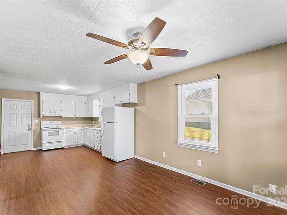 This two-bedroom, one-bath home features an open floor plan and is conveniently located near downtown Morganton and I-40. Key updates include a heat pump installed in 2018, a newly paved driveway, updated window fixtures, and vinyl-clad windows. The interior boasts natural colors, vinyl flooring, a new refrigerator, and a new heater in the laundry room. The exterior has recently been painted, and the property offers a huge backyard with an outbuilding.