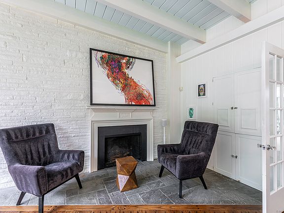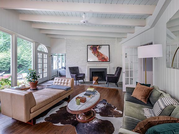 Mid-Century single-level in a convenient Roxbury location. Cool mad-men vibe with floor to ceiling windows, exposed beams, vaulted ceilings, stone and wood floors, and wood paneling. Throughout the house the many windows pour natural light in and give fabulous views over the private and manicured grounds. The home has multiple versatile rooms giving a choice of layout to fit your needs. The formal living room with fireplace includes the dining space and overlooks the granite patio and Scott inground gunite pool. The updated kitchen with stainless steel appliances boasts a stone floor and charming built-in cupboard. The nicely sized family room with fireplace is set near the rear of the house and can also be used as a quiet study or office. The current breakfast room off the kitchen with wood stove and half bath can double as a sitting room or the formal dining room. There is a spacious wood paneled conservatory style sunroom. There are two ensuite bedrooms both with French doors that lead to the lush gardens and grounds. The third bedroom completes the home and has charming built-ins and skylight. The property includes a detached two bay garage with studio/gym and a pool cabana with outdoor shower. House is wired with Ubiquity WiFi. Come take a look!
