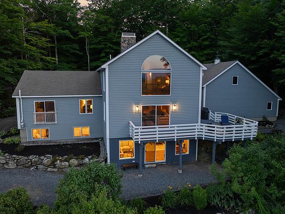 Stunning custom-built, timber frame home with SPECTACULAR VIEWS! Set on over 2 acres, this breathtaking property feels extremely private and secluded. The heart of the home is a dramatic Great Room featuring a two-story fieldstone fireplace, and floor to ceiling windows, framing the dramatic views. The open floor plans continues to the kitchen and dining area. Also on the first floor, is a spacious primary bedroom with en suite that continues to capture the stellar views. The second level of the home is light and airy with two additional bedrooms, a guest bath, loft area, and sitting nook for an almost "pictured-frame" sighting of Red Hill and beyond. The recently finished lower level of the home, is thoughtfully and beautifully designed, with a family room that walks-out to more outdoor living space, an office, bonus guest room, and fitness room. There are many outdoor sitting areas set amongst the landscaped gardens. The property feels like a sanctuary, and is only a short drive to both downtown Meredith and Center Harbor Village. Waukewan Golf Club is within walking distance, and as Center Harbor residents, there is beach and boat launch access on Lake Winnipesaukee, and boat launch access to Squam Lake.
