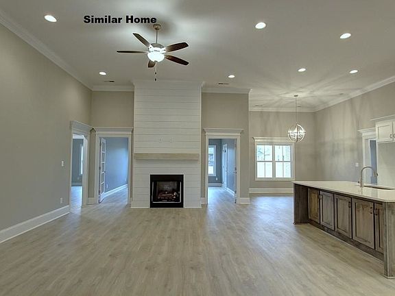 Under Construction-3 CAR GARAGE - NO CARPET - 12' CEILINGS - EXTENSIVE TRIM - The Monticello A3 w/ 4 bedrooms, 3 baths, dining room & sunroom. Open kitchen has 12' ceiling, soft close custom cabinets w/ undercabinet lights, granite, large island with storage & seating, Gas Range Package w wall microwave, tile backsplash & walk-in pantry. Family Room has 12' ceiling, recessed lights, ceiling fan & gas-log fireplace: Formal Dining Room w/12' coffered ceiling. Master Bedroom w/dbl. trey ceiling, recessed lights, ceiling fan. Master bath includes freestanding tub, tile shower & rimless door & large walk-in closet. Sunroom w/12' ceiling. Bedrooms w/ ceiling fans, crown. Baths have granite.